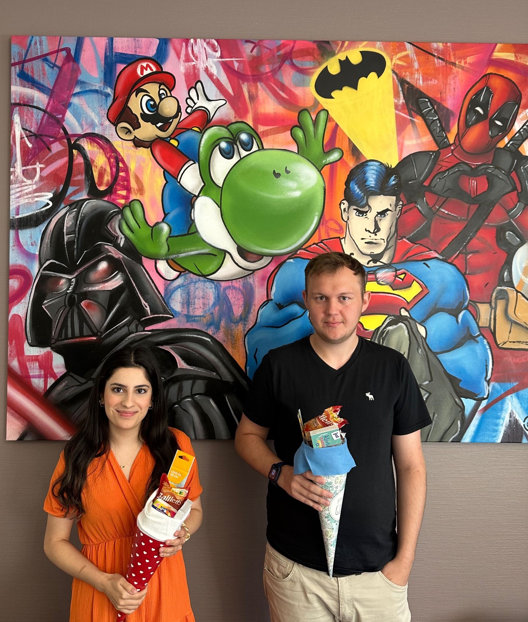 Herzlich willkommen an die beiden neuen Azubis im Team! Wir freuen uns riesig, euch bei uns zu haben. Bereitet euch auf eine wilde Fahrt voller Kaffeepausen, Meetings und natürlich viel Lernen vor. Wir versprechen: Es wird nie langweilig!